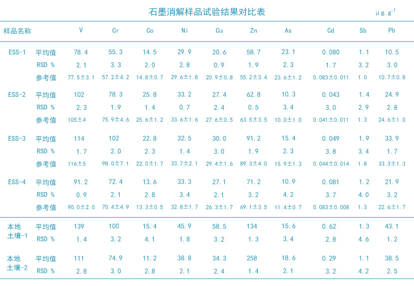 本文采用全自動石墨消解土壤,ICP/MS同時測定土壤中V、Cr、Co、Ni、Cu、Zn、As、Cd、Sb、Pb等10種金屬元素的方法,得到了滿意的結(jié)果,使得土壤金屬元素的分析批量化、智能化得以實(shí)現(xiàn)。
