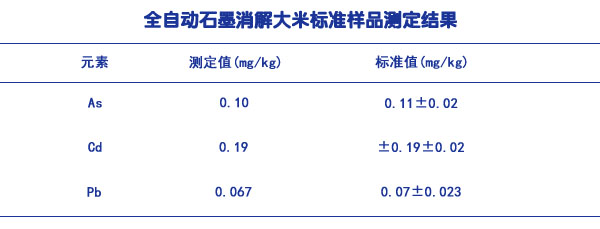 全自動石墨消解大米標準樣品測定結果