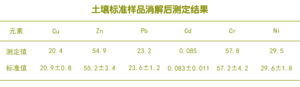 土壤標準樣品消解后測定結果