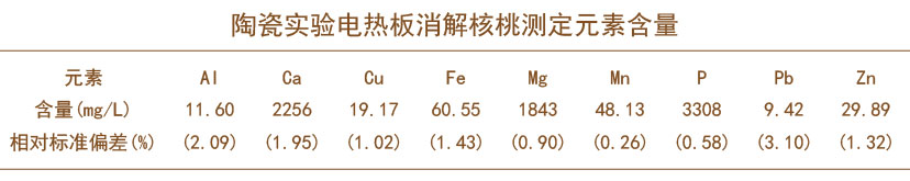 文章中通過陶瓷實驗電熱板對核桃進行常壓濕法消解,測定核桃中的無機元素含量,對重金屬含量分析提供經(jīng)驗。實驗電熱板消解方法安全、可靠,為核桃的營養(yǎng)成分研究打開科學(xué)之路。